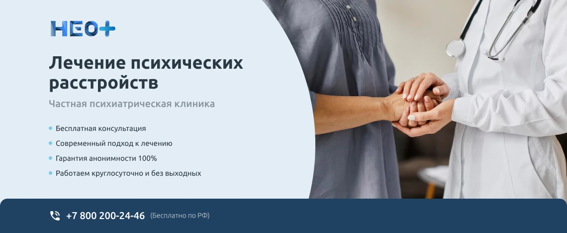 Записаться на прием к врачу-психиатру можно на официальном сайте клиники «НеоПлюс» в Солнечногорске или по телефону ☎️ +7 (800) 200-24-46. Звоните нам, не запускайте проблему. Мы знаем, как вернуть здоровье и покой в Вашу семью!